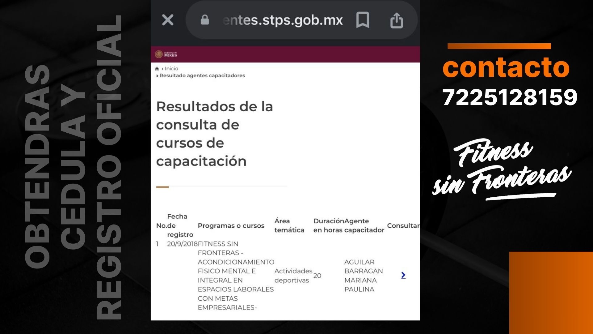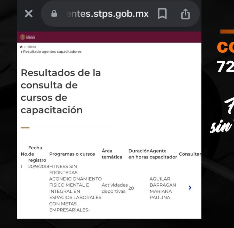 Fitness sin Fronteras ha sido creado y registrado como curso de Acondicionamiento físico, mental e integral en espacios laborales con metas empresariales ante la Secretaria de Trabajo y Previsión Social por la Agente Capacitador Externo Mariana Paulina Aguilar Barragán con la finalidad de impulsar el desarrollo del potencial humano brindando servicios profesionales de coaching y acondicionamiento físico, mental e integral en los 4 imperios del ser: mente, cuerpo, alma y espíritu.